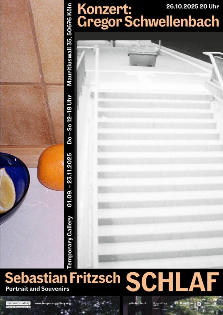 Sleep requires a state of trust, calmness, and relaxation, intimacy with one's own thoughts, which begin to meander in the transition to dreams, repeatedly processing experiences and establishing connections. In this sense, multi-instrumentalist Gregor Schwellenbach fills the rooms of Sebastian Fritzsch's exhibition “Sleep” with meandering memories and chains of association, including a re-performance of his intervention “Gürzenichstraße” for bass drum and sampler, minimalist pieces for keyboard, and electronic recordings.