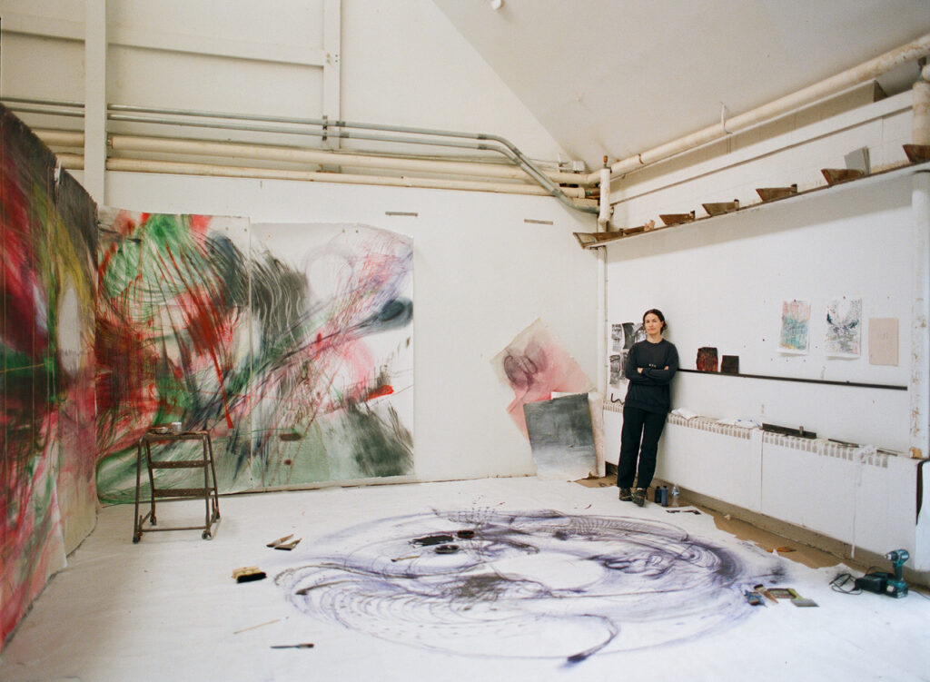 Maria VMier is an artist who lives and works in New York and Munich. At the heart of MVM's multidisciplinary practice is a form of painting that develops from writing-like, idiosyncratic movements into complex structures that seem to be in constant motion. For MVM, painting is less a place of reification or expression and more a practice of research, experience, and (un)learning.